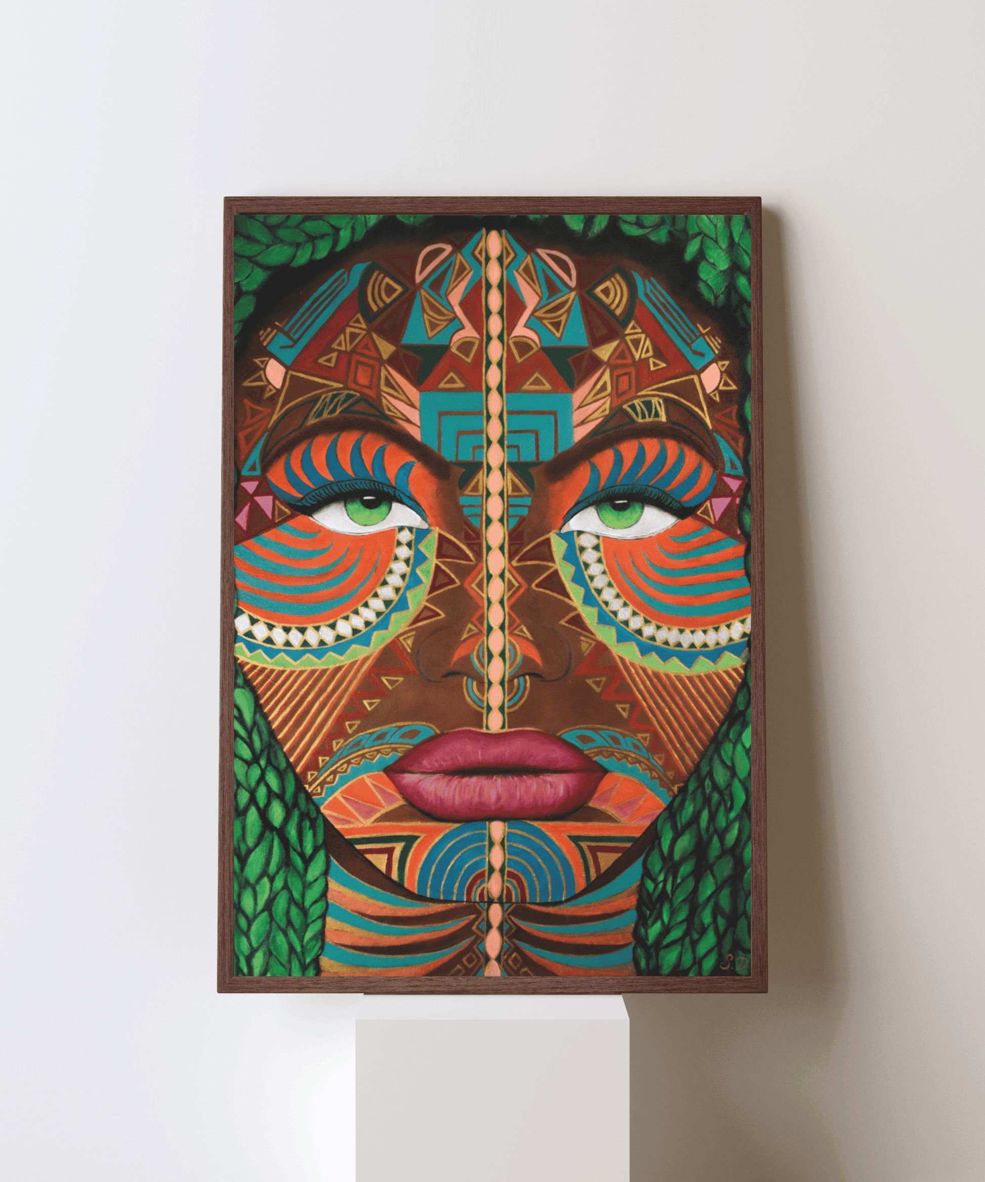 Guard your inner light with Soulkeeper. Her steady gaze and golden crown symbolize harmony, serenity, and the delicate balance of the soul. The turquoise tones connect with expression and individuality, reminding us that everyone carries their own voice and energy.